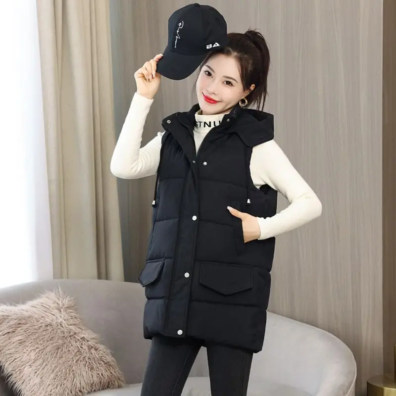 New Fashion Multiple Pockets Hooded Vest Women Sleeveless Jacket Women Warm Casual Woman Waistcoat Outerwear Girls Vests Female