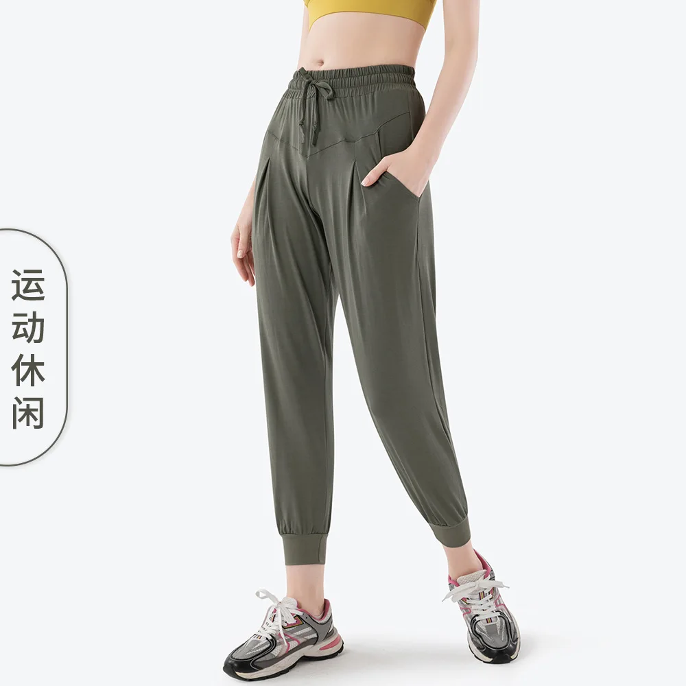 Брюки женские спортивные с завязками, быстросохнущие спортивные штаны с завышенной талией для бега и отдыха, для танцев и фитнеса
