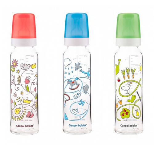 Бутылочка стеклянная Canpol Babies с рисунком 240 мл, 42/201, Разные цвета