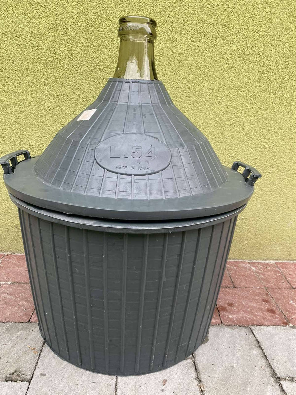 Бутыль демиджон в пластиковой корзине для выдержки и хранение напитков.