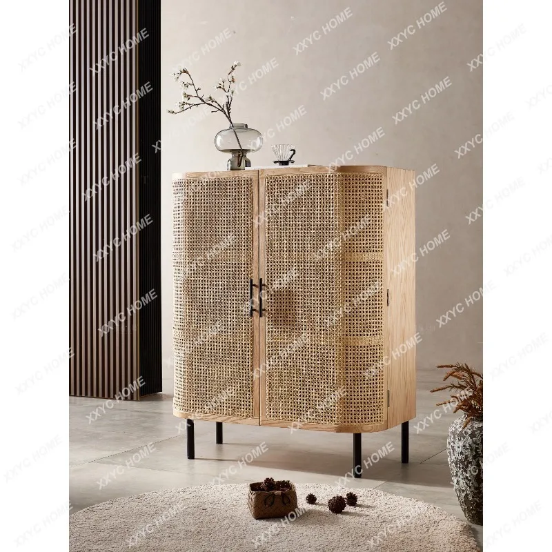 Буфет из массива дерева, винтажный ротанговый буфет, шкаф B & B для спальни, гостиной, шкафчик для хранения