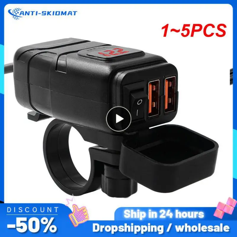 Быстрое зарядное устройство для мотоциклов с креплением на автомобиль, аксессуары для мотоциклов, зарядное устройство QC 3,0 с двумя USB-портами, водонепроницаемый цифровой адаптер вольтметра, 1 ~ 5 шт.