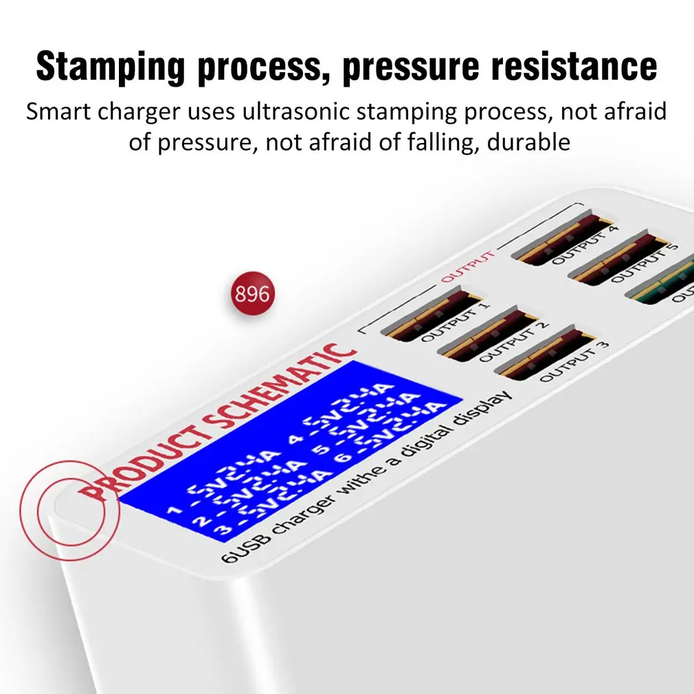 Быстрое зарядное устройство USB с ЖК-дисплеем, универсальное зарядное устройство для телефона с 6 USB-портами