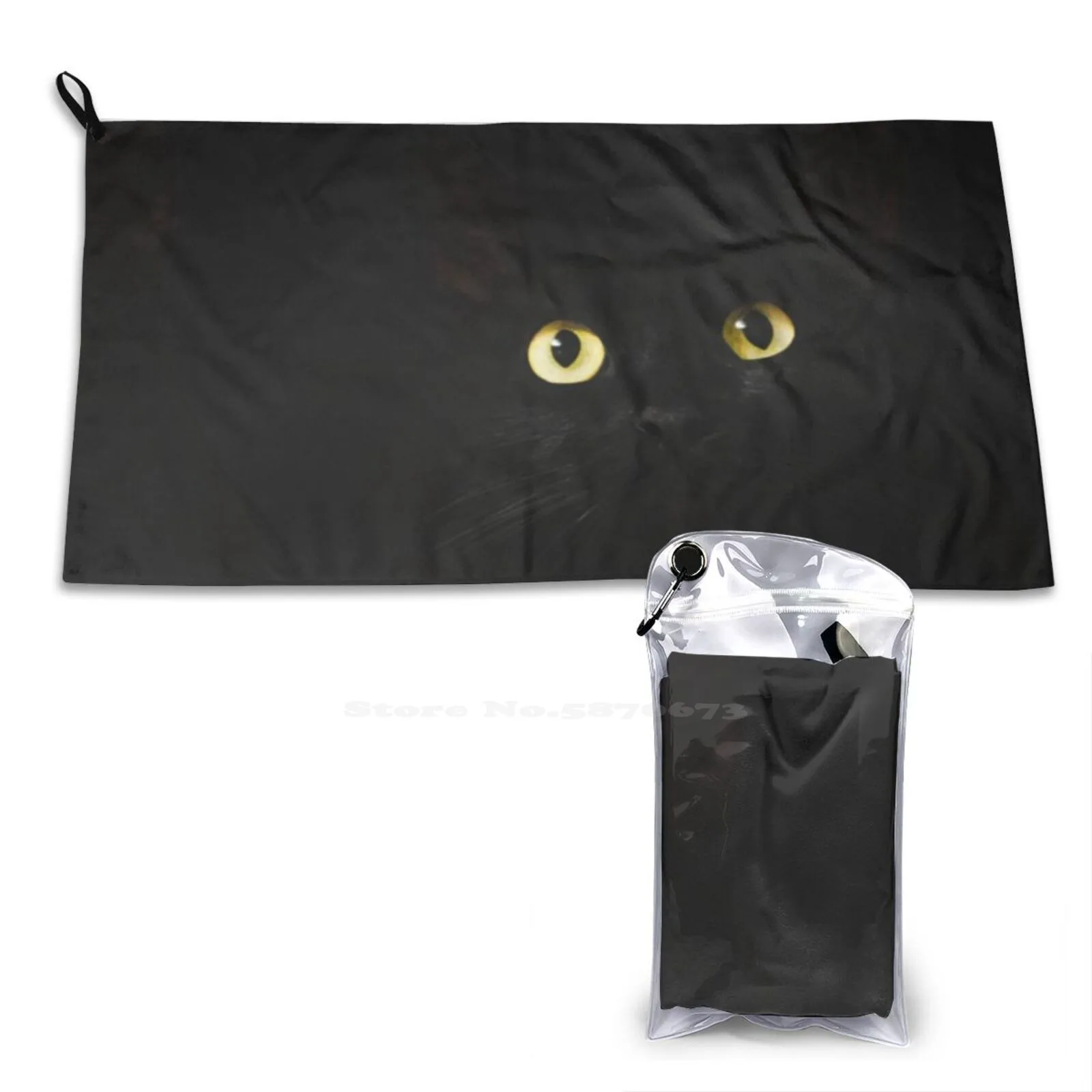 Быстросохнущие пляжные полотенца в виде черной кошки с черным акцентом «Я люблю кошек»