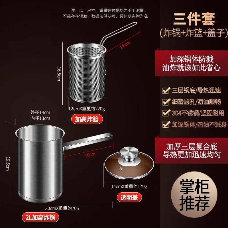 Бытовая небольшая фритюрница с фильтром Немецкая фритюрница из нержавеющей стали марки 304 Увеличенная и углубленная сковорода для экономии масла Глубокая кухонная утварь Кухня 30cm x14cm x19.5cm
