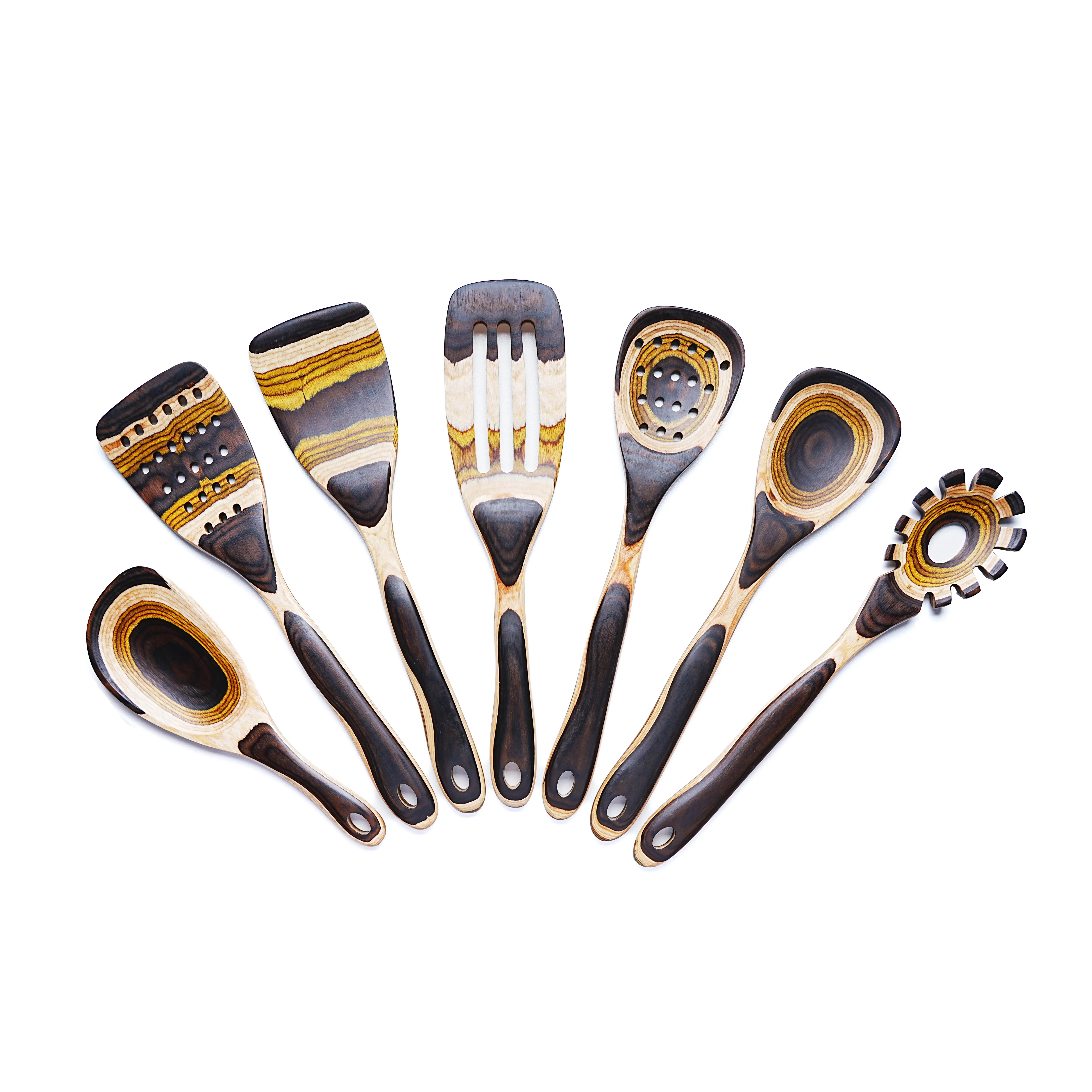 Бытовая посуда Коричневый цвет Деревянная лопатка Набор из семи предметов Цветная деревянная ложка для салата Набор лопаток Кухонная утварь Инструменты для приготовления пищи