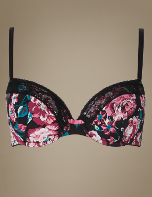 Бюстгальтер-балконет с формованными чашками пуш-ап A-E и красочным цветочным принтом