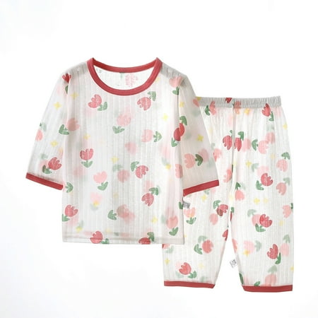 KyCheLot Baby Short Sleeve Pajama Sets Cute Printed 2-Piece Sleepwear Toddler Boy Girl Fall Loungewear Outfit