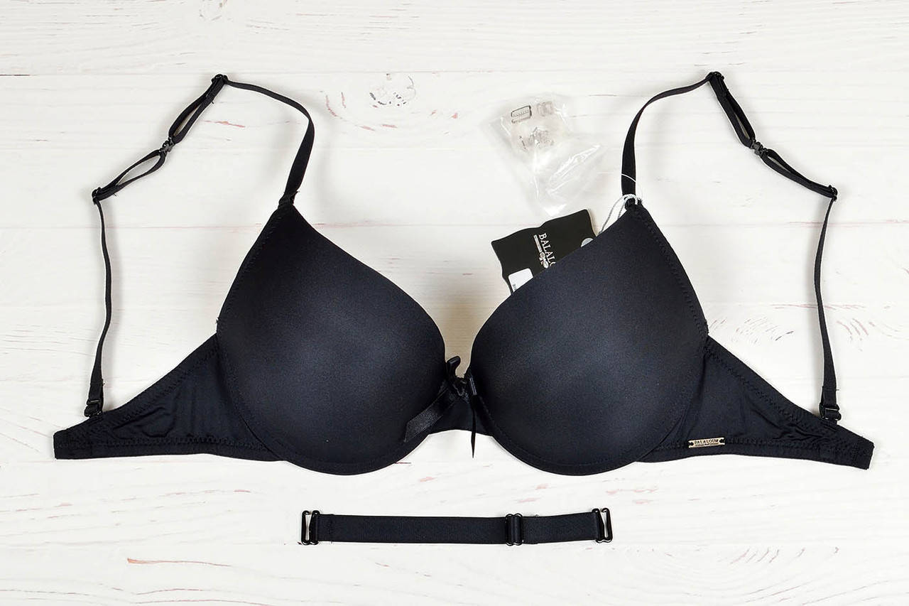 Бюстгальтер трансформер имеет гладкую формованную чашку с эффектом пуш ап. Наполнитель пуш ап гелевый. Чашки соединены тонкой перемычкой декорированной бантиком. Особенностью данного бюстгальтера есть съемные трансформирующиеся бретели, которые предусматривают шесть вариантов крепления. В комплекте с бюстом идут силиконовые бретельки и стандартные трикотажные, а также силиконовая спинка. Бюстгальтер прекрасно подойдет под облегающую одежду с глубоким декольте и открытым верхом. Состав ткани: 92% нейлон, 8% спандекс.
