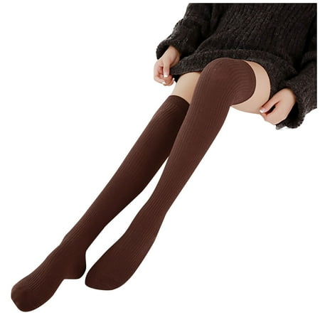 QWERTYU Womens Causal Warm Leg Over the Knee Socks Winter Long Knee High Socks Coffee One Size