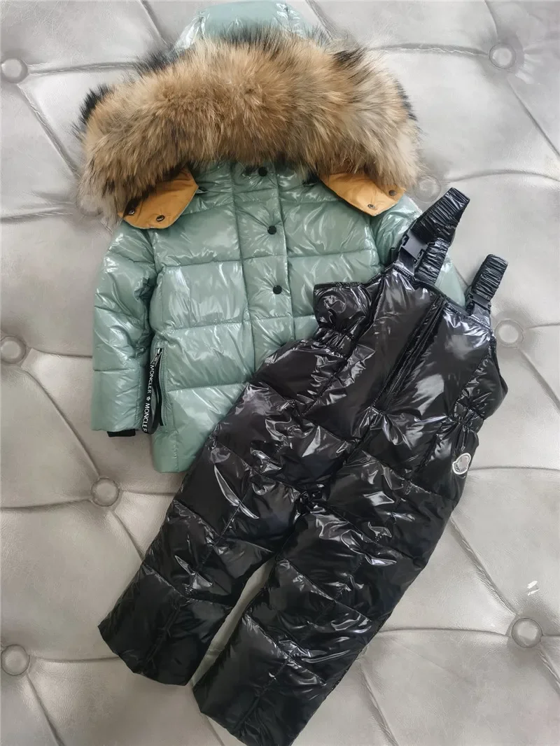 2023 Kids Winter Jacket with Pants 2 Pcs Set Children Clothes Warm Goose Down Coat with Big Real Fur Collar 0-12Y