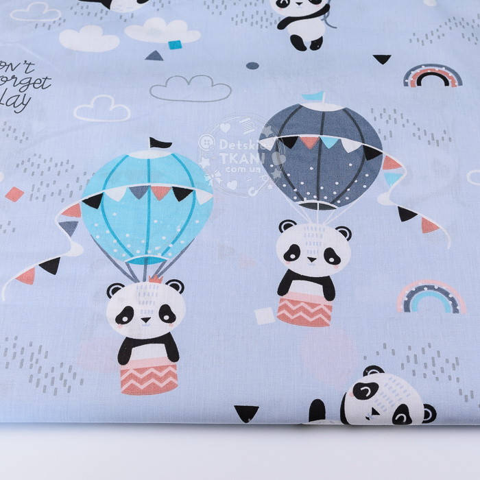 Бязь с пандами на воздушных шарах на серо-голубом фоне, № 2661, Серый
