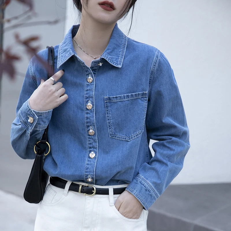 ВИНТАЖНАЯ ДЖИНСОВАЯ Свободная Повседневная однобортная блузка на весну и осень, Женская универсальная рубашка в Корейском стиле, женский элегантный кардиган, Топ