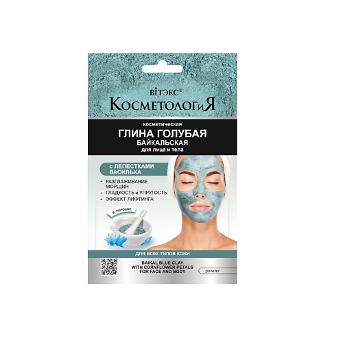 ВИТЭКС КОСМЕТОЛОГиЯ ГЛИНА ГОЛУБАЯ БАЙКАЛЬСКАЯ с лепестками василька для лица и тела в порошке 28 Маски для лица
