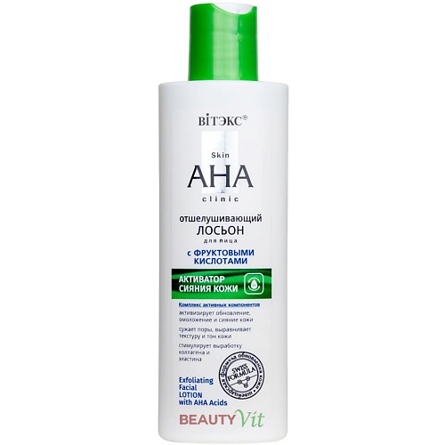 ВИТЭКС Лосьон для лица Отшелушивающий с фруктовыми кислотами Skin AHA Clinic 150.0, Лосьон для лица Отшелушивающий с фруктовыми кислотами Skin AHA Clinic