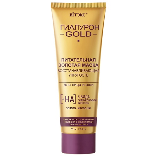 ВИТЭКС Питательная золотая маска восстанавливающая упругость для лица и шеи Гиалурон GOLD 75, Питательная золотая маска восстанавливающая упругость для лица и шеи Гиалурон GOLD