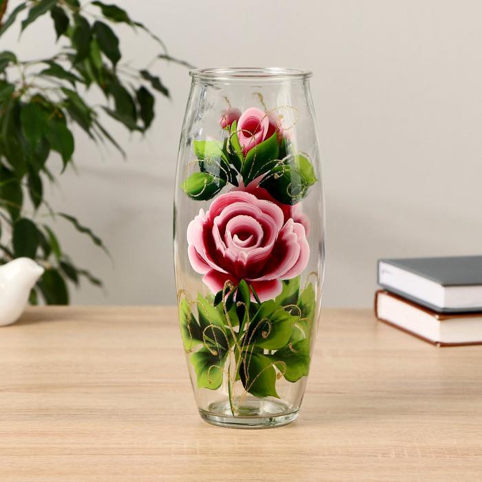 Ваза Роза с росписью на проз.стекле, d-7см 10х23 см