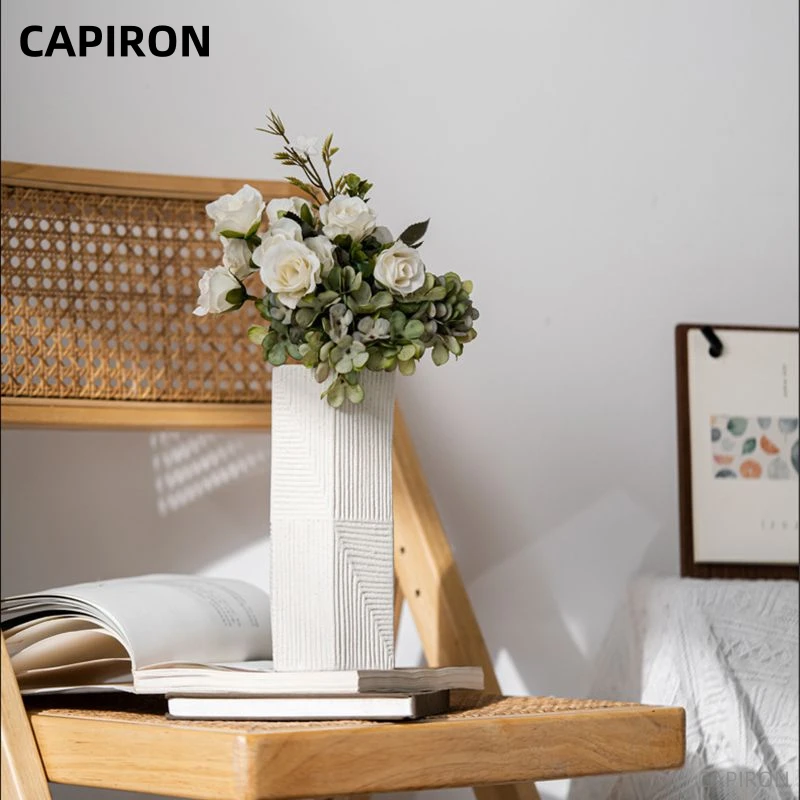 Ваза Шестигранная керамическая для пампасной травы, в скандинавском стиле