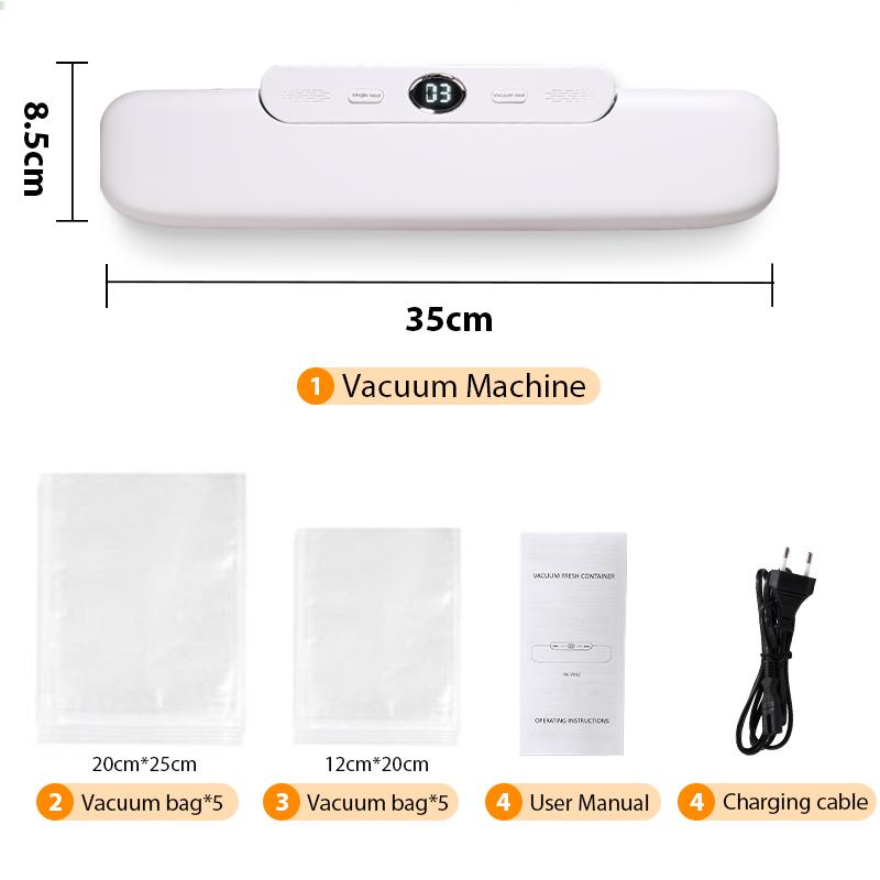 Вакуумная упаковочная машина для домашней кухни, включая 10 шт. пакетов для хранения пищевых продуктов, коммерческая вакуумная упаковочная машина для пищевых продуктов 220V-EU белый