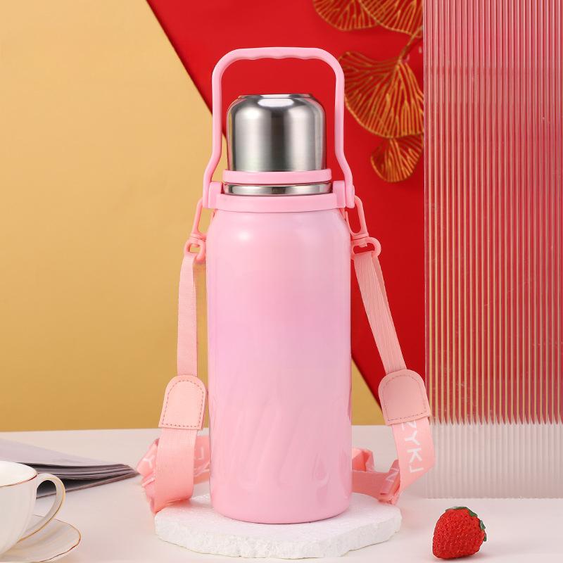 Вакуумная чашка из нержавеющей стали 316 большой емкости, уличный портативный чайник с ремешком, кока-кола, одна крышка, двойная отскакивающая чашка 1200ml розовый