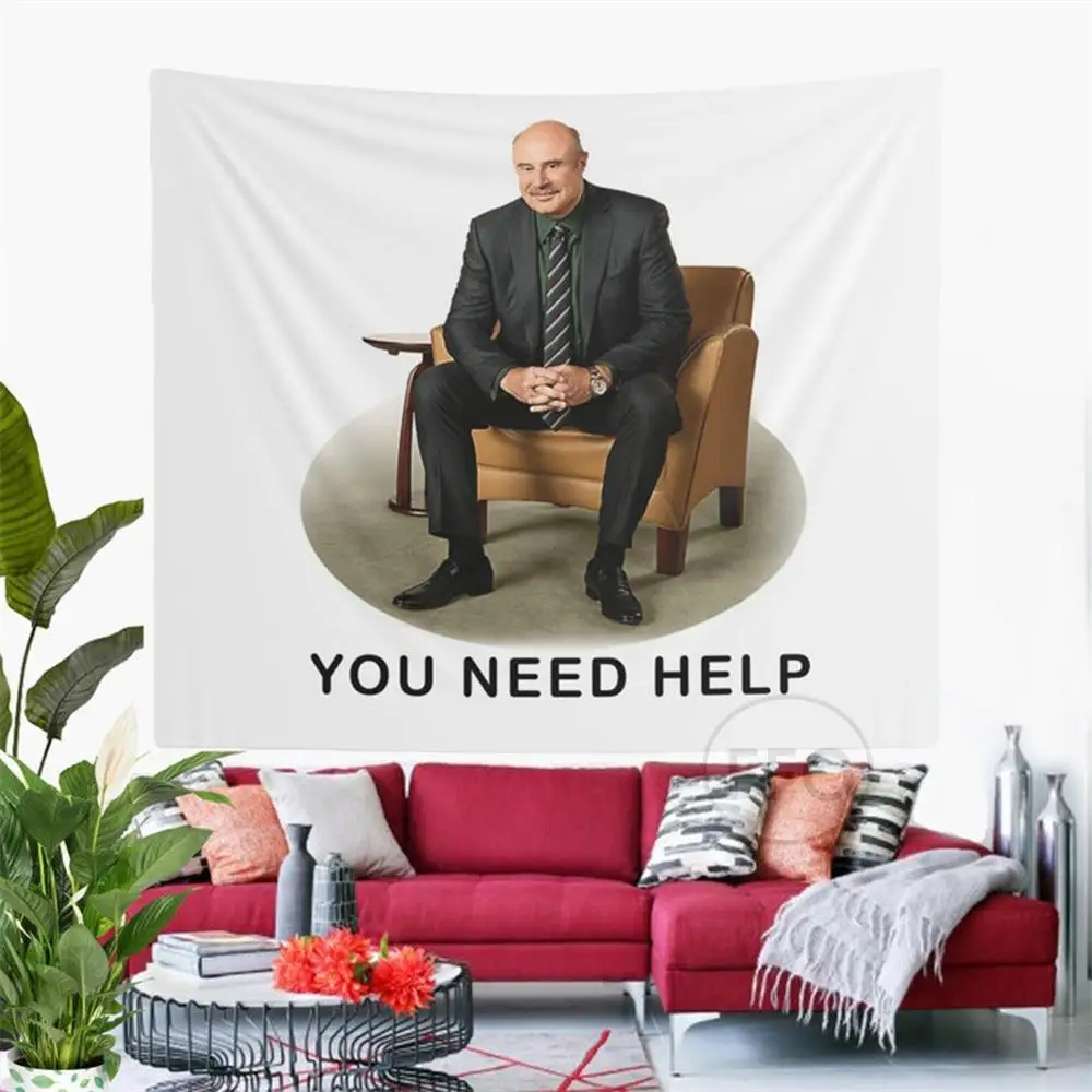 Вам нужна помощь, гобелен Доктор Фил мем, милый Настенный декор, гобелен, эстетическое украшение комнаты, гобелены, обои для спальни