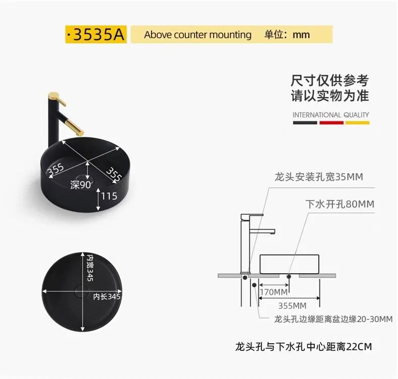 Ванная комната Керамическая Раковина Ванна Круглая Черная Чаша Стиральная Машина Раковина Навесной Водопад Смеситель Кран Комбинированный