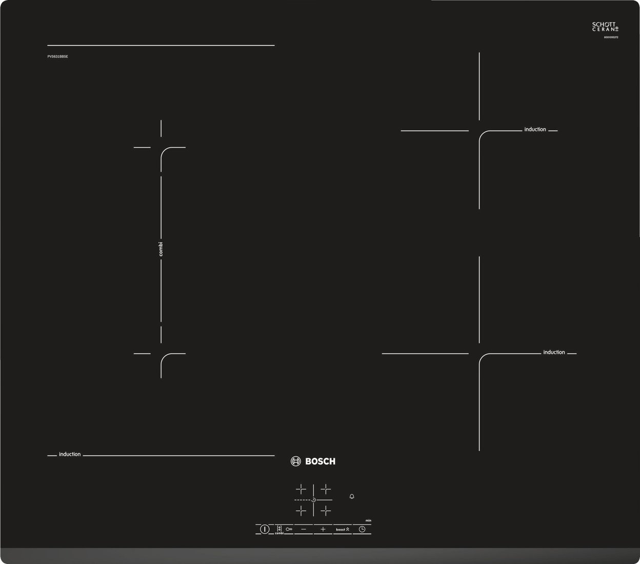 индукционная на 4 конфорки, cтеклокерамика, мощность: 6900 Вт, независимая установка, размеры (ШхГ): 59.2x52.2 см