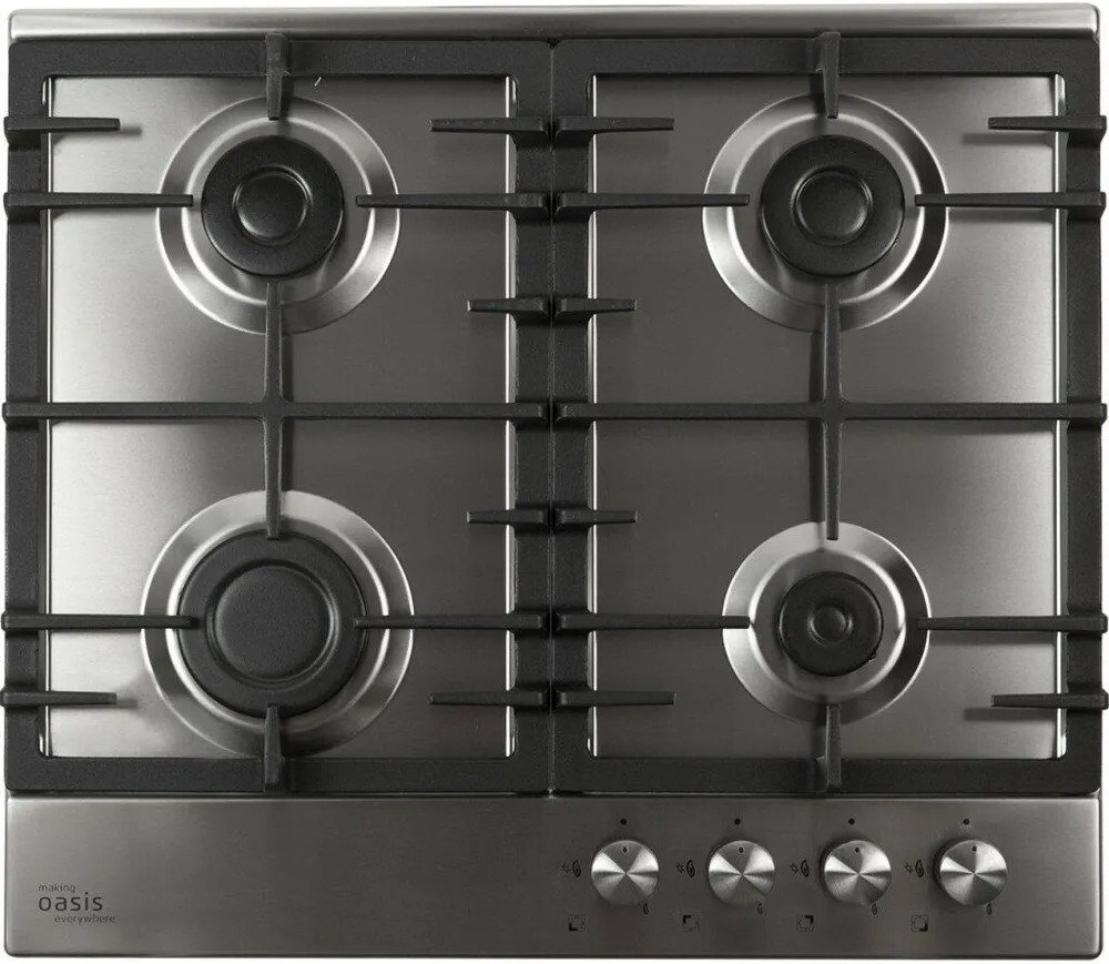 газовая на 4 конфорки, нержавеющая сталь, мощность: 5500 Вт, автоматический электроподжиг, газ-контроль, решетки: чугун, независимая установка, размеры (ШхГ): 58x54.5 см