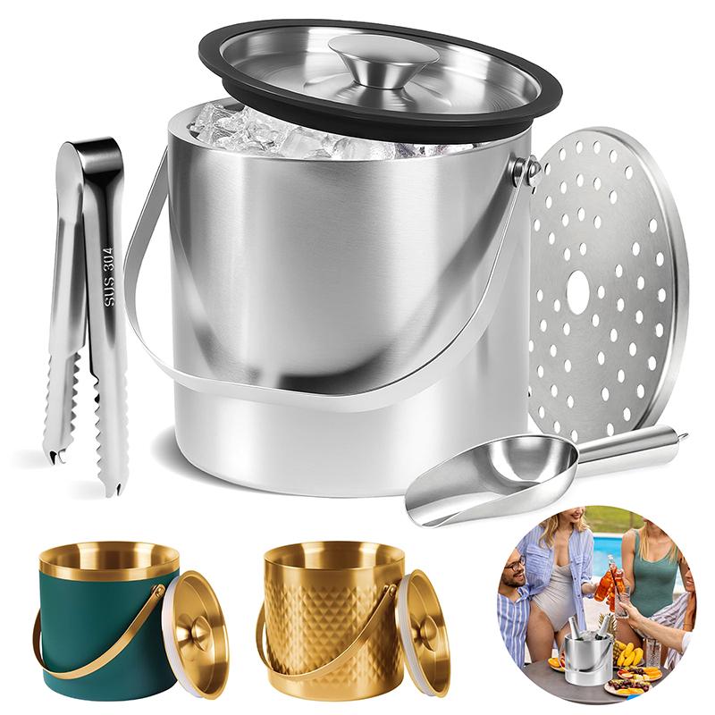 Ведро для льда, Ведро для льда с силиконовым уплотнительным кольцом Двустенная вакуумная изоляция Ведра для шампанского серебряный