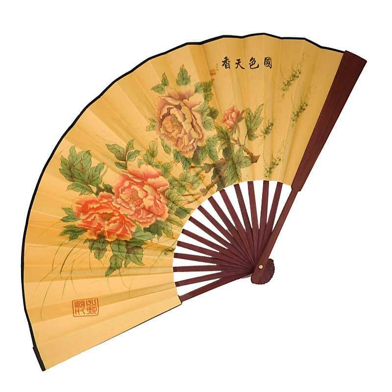 Веер двухсторонний "Пионы" 26х47 см бежевый (4588a), Желтый