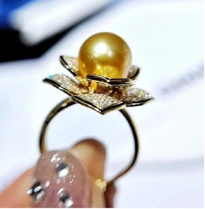 Великолепное AAAAA 10-11 мм подлинное натуральное Золотое кольцо с жемчугом ЮЖНОГО МОРЯ 925s.