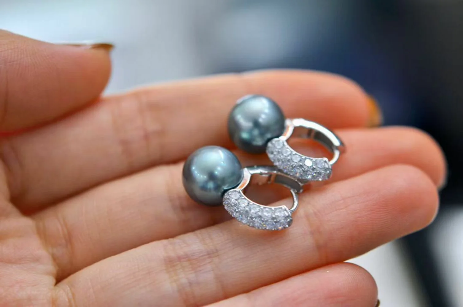 Великолепные серьги-гвоздики с жемчугом 9-10 мм, круглые, серебристые, серые, в южноморском стиле, 925s