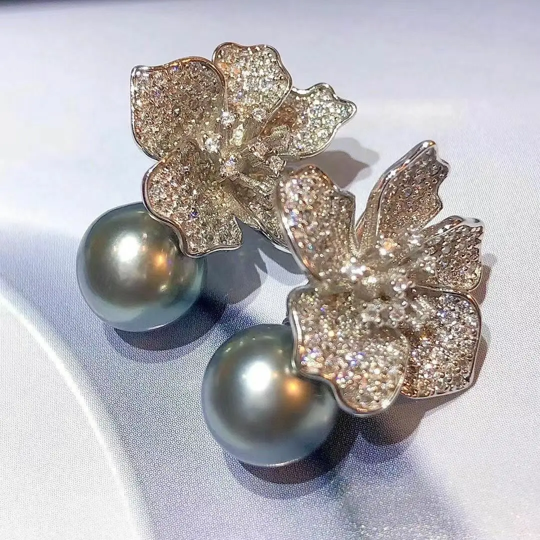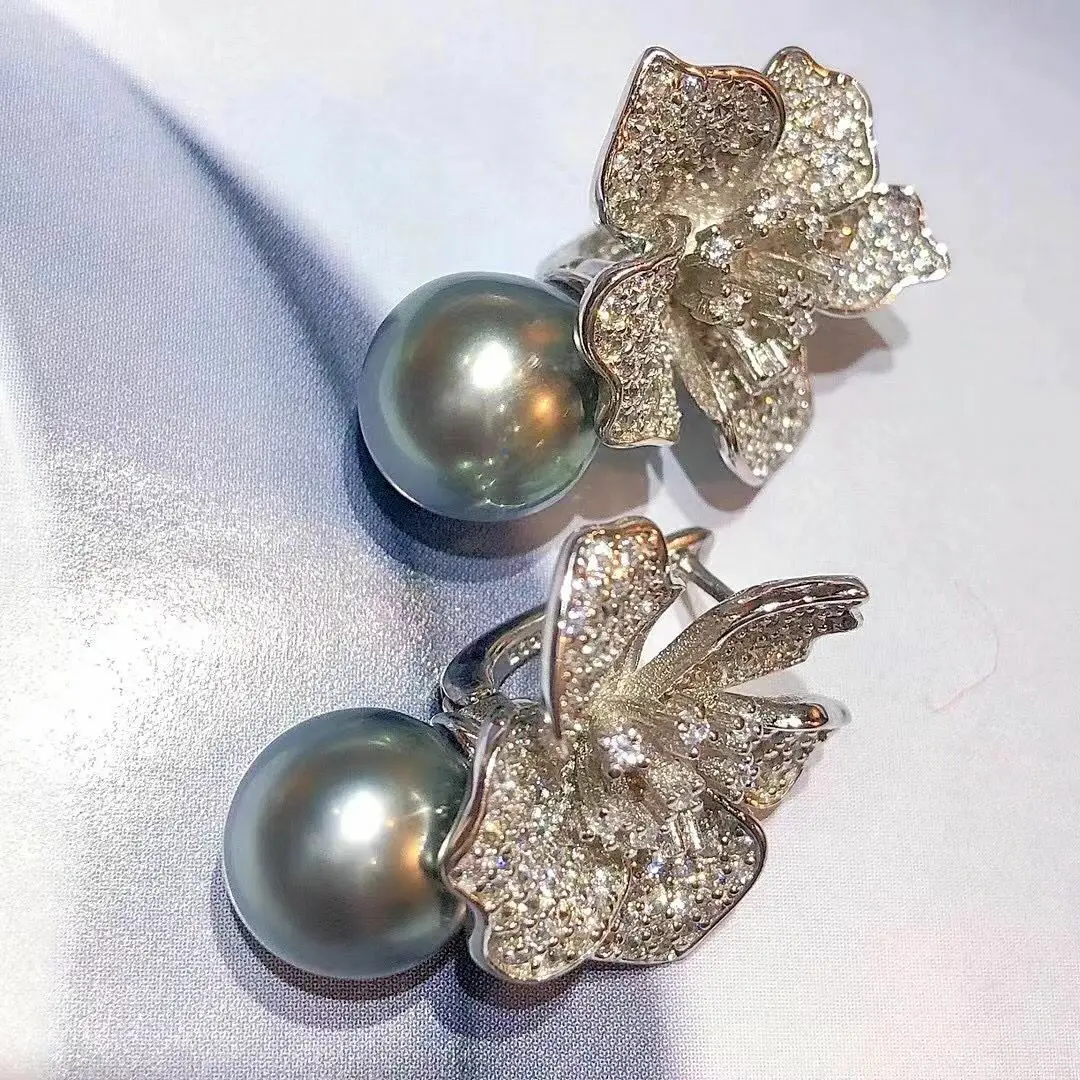 Великолепные серьги с жемчугом 10-11 мм, круглые серебристые и серые серьги 925s в южноморском стиле