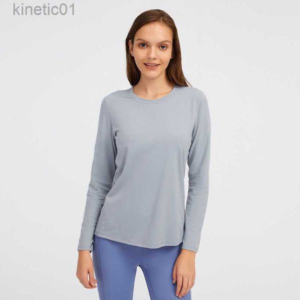 designer lululemens t shirt autumn and winter new loose yoga long sleeve womens round neck elastic nude running sports original factory fitn, White