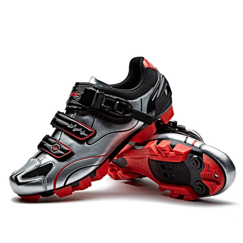 Велообувь SANTIC MTB Knight Palladium, размер 40, серебристый/красный