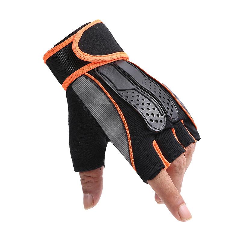 Велосипедные фитнес-перчатки с полупальцами для тренировок на открытом воздухе, фитнес-защитные перчатки, противоскользящие, против мозолей, велосипедные спортивные перчатки, мужские и оранжевый