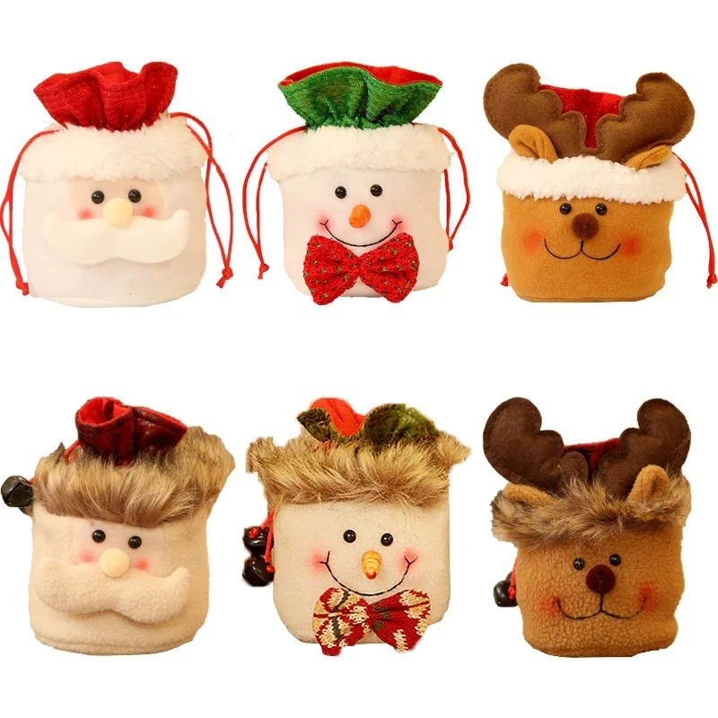 Рождественская Подарочная сумка со шнурком, Санта-Клаус, снеговик, олень, праздничная Рождественская вечеринка, искусственная кожа