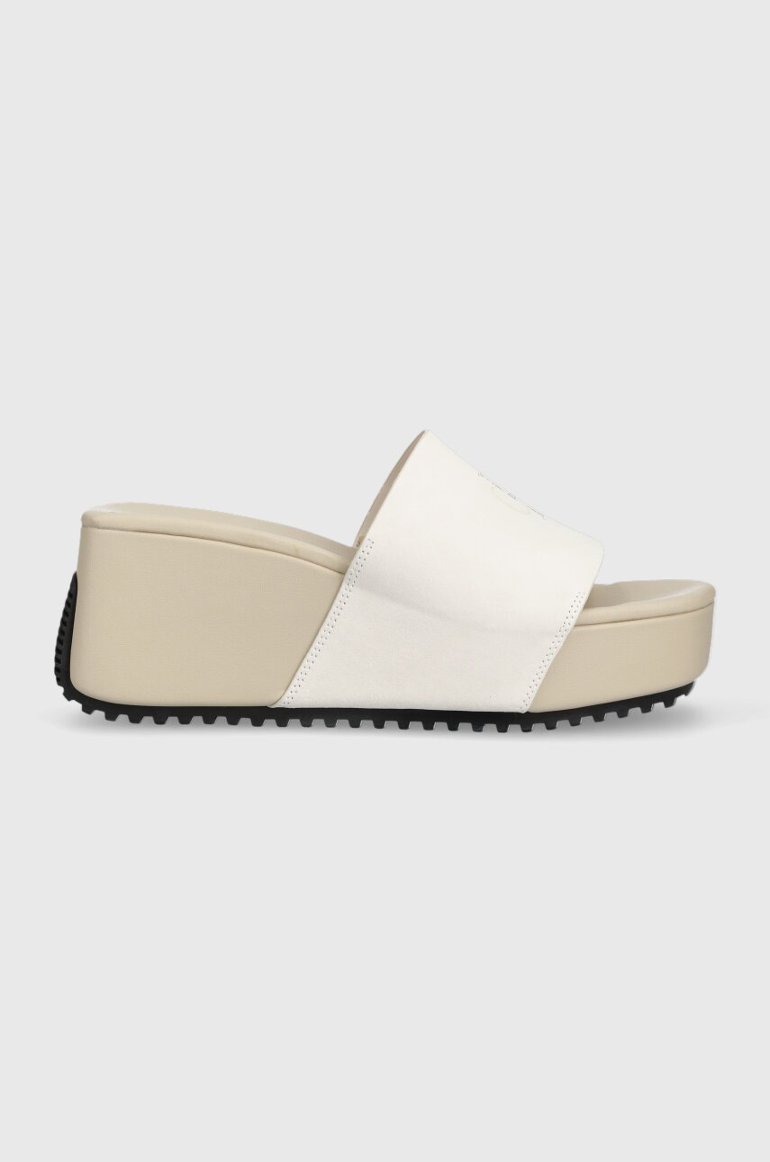 Велурени чехли Calvin Klein Jeans WEDGE BLOCK SANDAL SU CON в бежово със скосена платформа YW0YW01015, Бежов