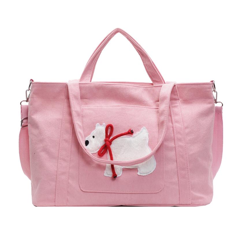 Вельветовая женская сумка через плечо, большая вместительная сумка-тоут, школьная сумка для занятий розовый