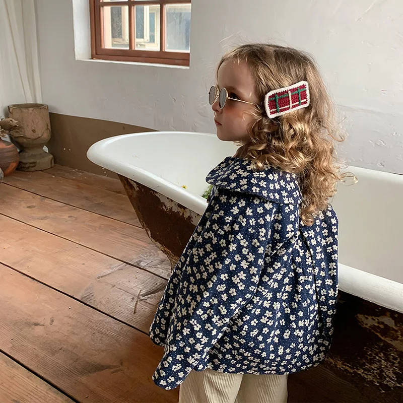 Вельветовая куртка с цветочным принтом для девочек, Повседневная хлопковая весенне-Осенняя детская куртка с длинным рукавом, хлопковая Мод...