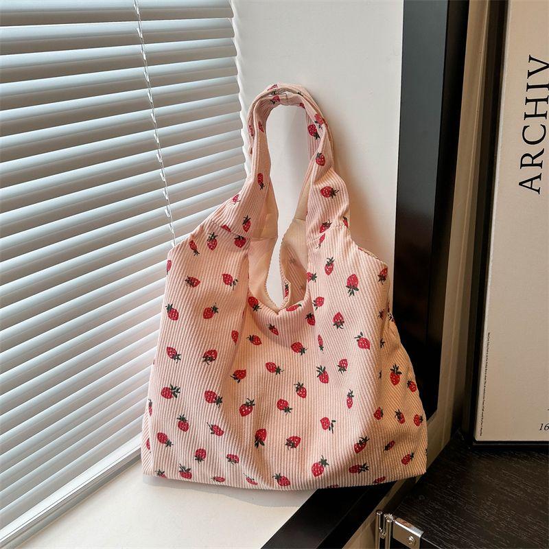 Вельветовая сумка на одно плечо, большая вместительная сумка-тоут, универсальная сумка с художественным принтом для подмышек, для поездок на работу розовый