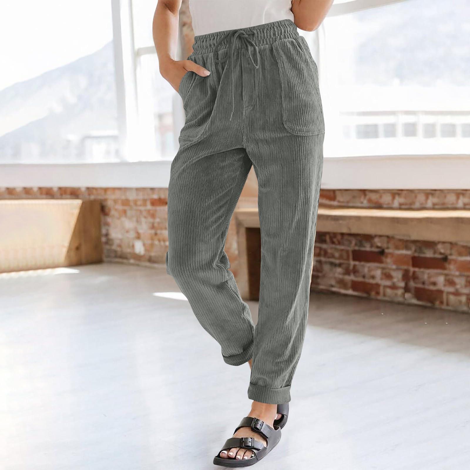 Вельветовые брюки для женщин, повседневные эластичные брюки с высокой талией на шнурке, прямые брюки, свободные удобные брюки с карманами S