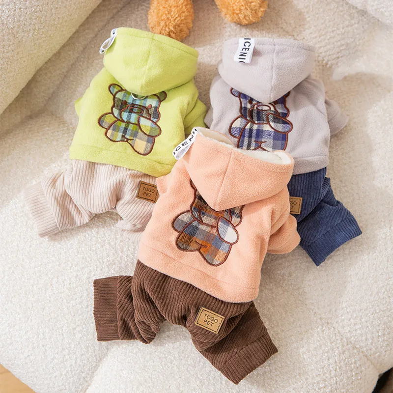 Вельветовые комбинезоны, одежда для собак, милые комбинезоны в клетку с медведем для щенков, одежда для маленьких собак, теплая осенне-зимня...
