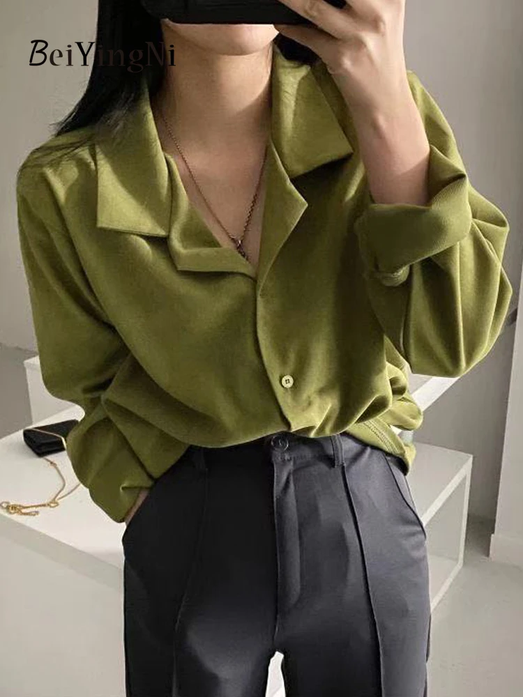 Вельветовые рубашки Beiyingni на осень и зиму, женские корейские шикарные винтажные свободные блузки на пуговицах, Женские повседневные черные элегантные весенние топы