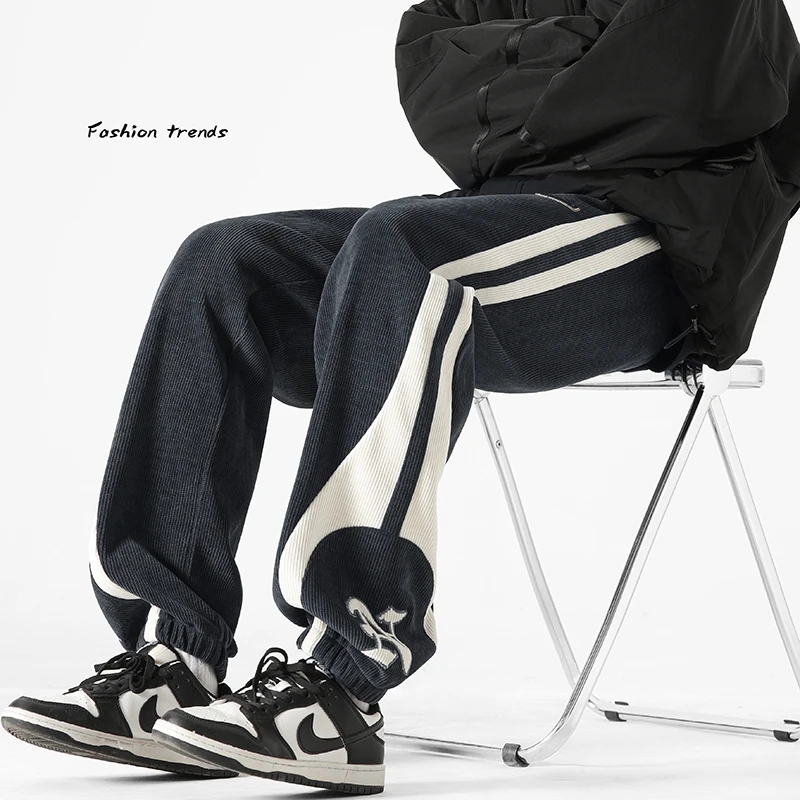 Вельветовые широкие брюки Harajuku, мужские модные шаровары, уличная одежда, брюки до щиколотки, мужские мешковатые повседневные брюки для бега Homme