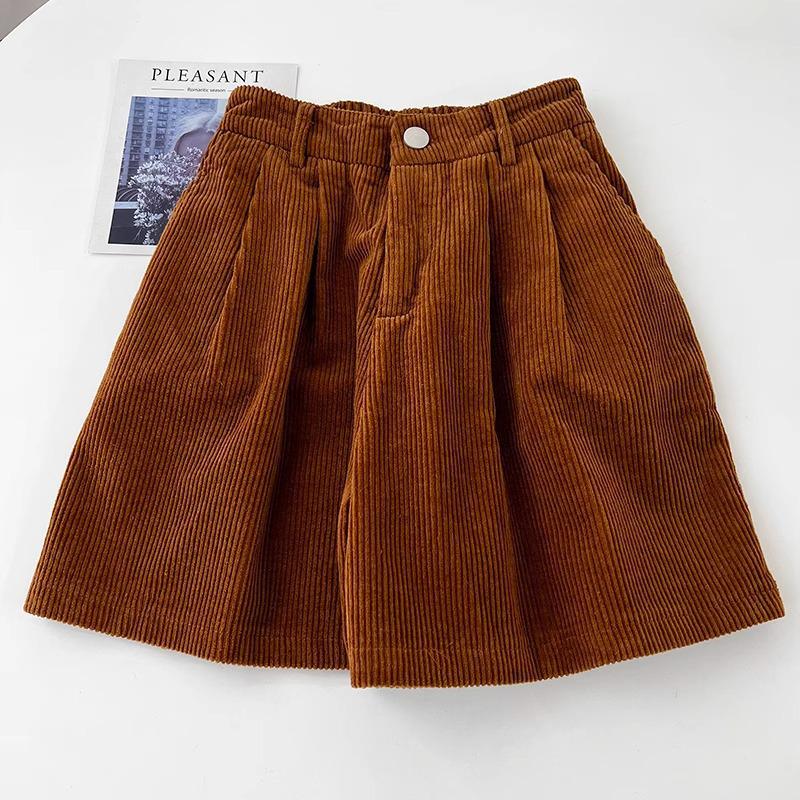 Вельветовые шорты в стиле ретро с высокой талией и широкими штанинами - черные S кофейный