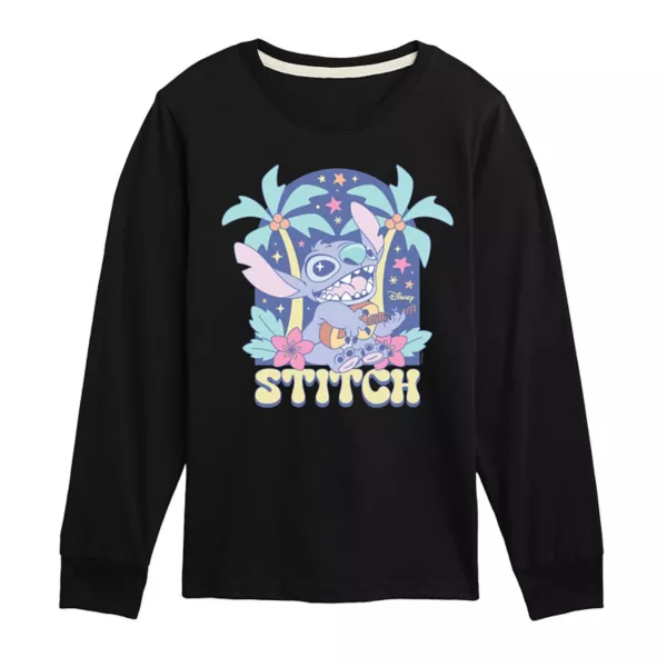 Футболка с длинным рукавом для мальчиков 8-20 лет «Лило и Стич» с принтом пальм Disney, черный