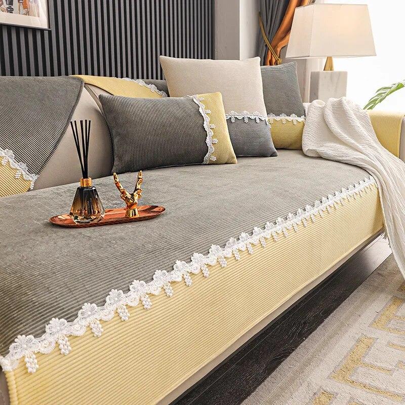 Вельветовый чехол для дивана, универсальный нескользящий чехол на диван для четырех сезонов для гостиной, бархатный полный чехол, защитный чехол для мебели 70x70cm 1pc