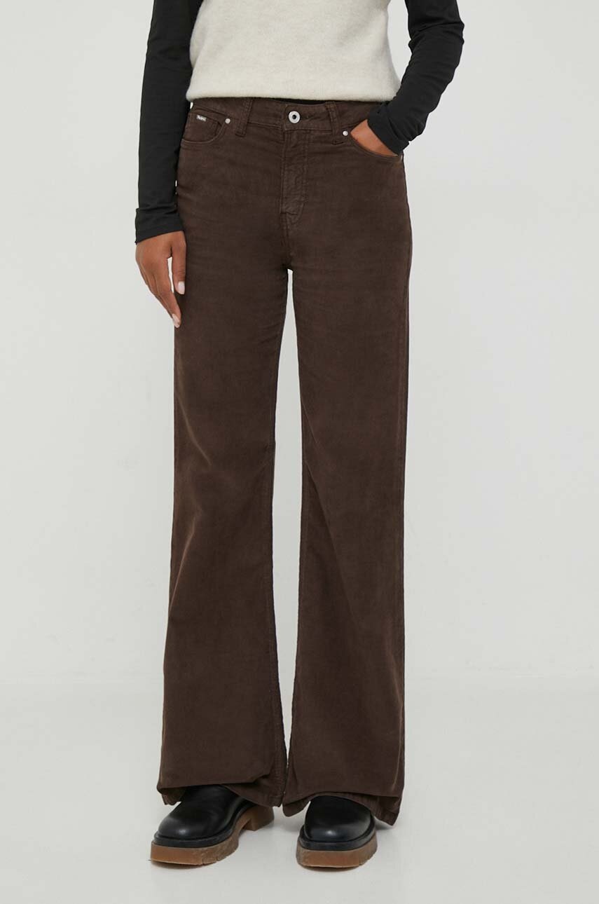 Вельветові штани Pepe Jeans Willa колір коричневий кльош висока посадка