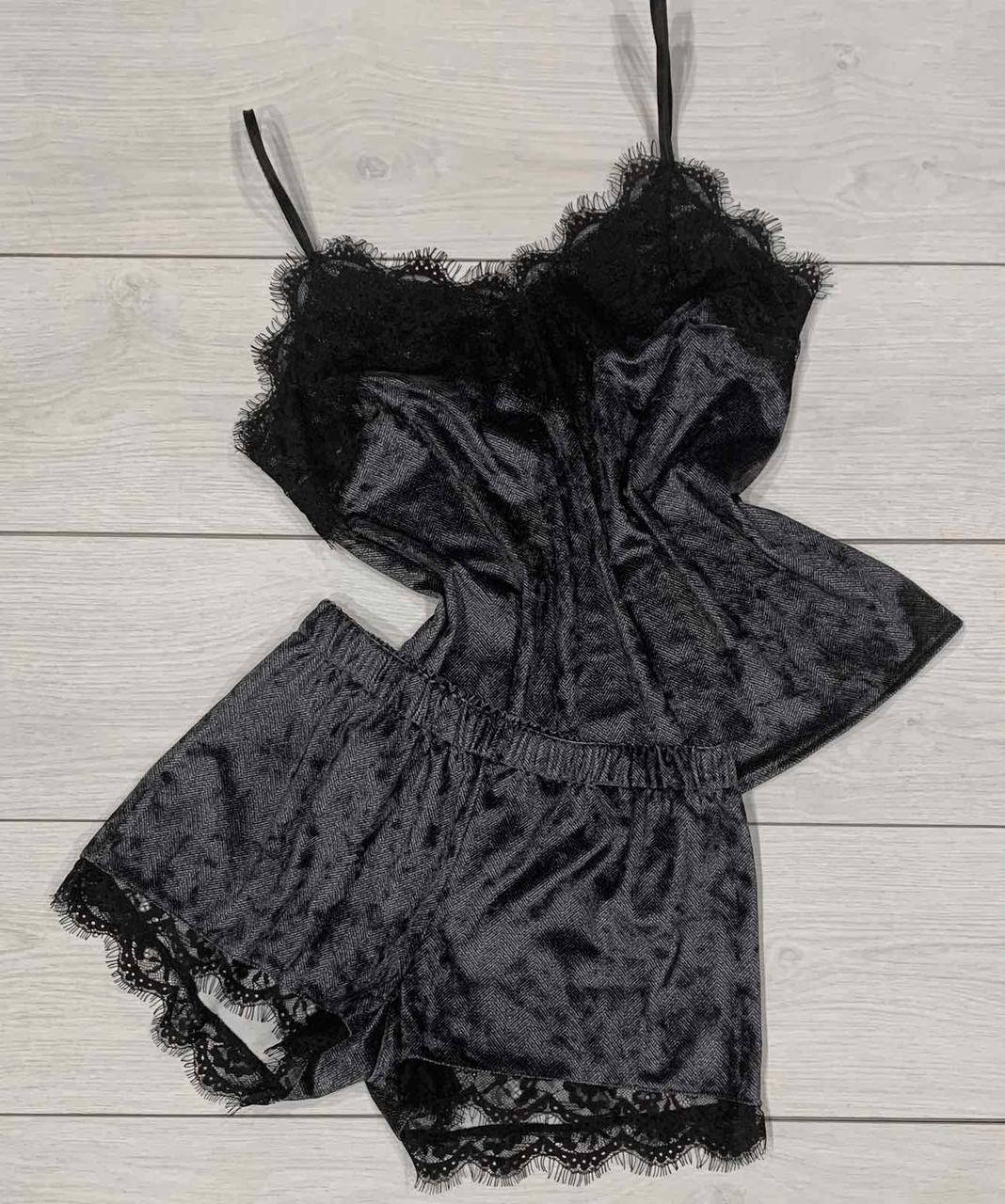 Спальный комплект, состоящий из майки на бретельках и свободных шортиков.